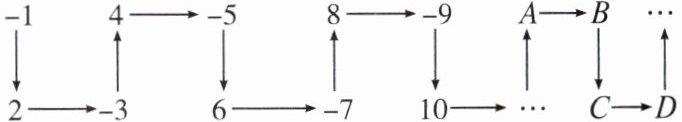 (2)观察不难发现,向下箭头的上方的数是负数,下方是正数,向上箭头的下方是负数,上方是正数,所以负数排在A,B,C,D中的B和D位置处.