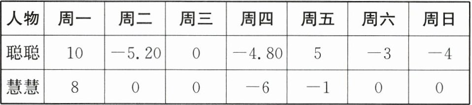 20. 聪聪和慧慧为了合理计划自己的开支,每天坚持记录自己当天的收支情况,这是她们上周的统计(记收入多于支出为正,单位:元).