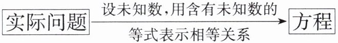 $\xrightarrow[{设未知数,用含有未知数的等式表示相等关系}]{实际问题} 方程$