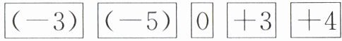 $\boxed{(-3)}$ $\boxed{(-5)}$ $\boxed{0}$ $\boxed{+3}$ $\boxed{+4}$