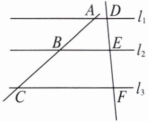 4. 如图,直线$l_1// l_2// l_3$,直线$AC和DF被l_1$,$l_2$,$l_3$所截,$AB = 5$,$BC = 6$,$EF = 4$,则$DE$的长为( )