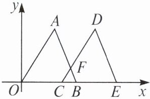 4. 如图,把$\triangle OAB沿x轴向右平移得到\triangle CDE$,$CD交AB于点F$,则$\triangle OAB$____$\triangle CFB$。