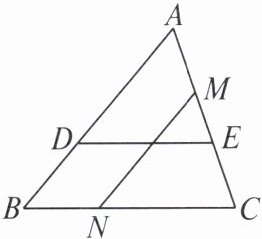 1. 如图,在$\triangle ABC$中,$DE// BC$,$MN// AB$,则图中与$\triangle ABC$相似的三角形有( )
