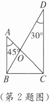 2. 将一副三角板按如图所示的方式叠放,则$\triangle AOB与\triangle DOC$的面积之比等于( )