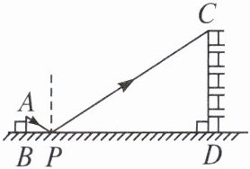 8 由光学知识知,反射角等于入射角. 不难分析得出∠APB = ∠CPD,再由∠ABP = ∠CDP = 90°,得到△ABP∽△CDP,即$\frac{AB}{CD}=\frac{BP}{DP}$. 代入数值求得CD = 8m.