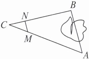 3. 如图,$ A $,$ B $ 两处被池塘隔开,在 $ AB $ 外取一点 $ C $,连接 $ AC $,$ BC $,在 $ AC $ 上取点 $ M $,使 $ AM = 3MC $。作 $ MN // AB $ 交 $ BC $ 于点 $ N $,量得 $ MN = 3.8 $ m,则 $ AB $ 的长为____。