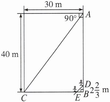∵$AC=\sqrt{30^2+40^2}=50$(m),$BD=\frac{8}{3}$m,AB = 40m,