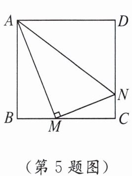 5. 已知正方形 $ ABCD $ 的边长为 $ 4 $,$ M $,$ N $ 分别是 $ BC $,$ CD $ 上的两个动点,且始终保持 $ AM \perp MN $。当 $ BM = $____时,四边形 $ ABCN $ 的面积最大。