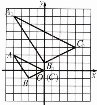 A 因为是放大为原来的2倍,且点$A_1$,$A$同在一条纵线上,所以点 P 一定也在$A_1A$的延长线上,设$AP=x$,所以有$\frac{x}{x+5}=\frac{1}{2}$,解得$x=5$,所以点 P 的坐标是$(-4,-3)$.