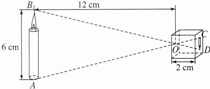 1. 小孔成像原理的示意图如图所示,根据图中所标注的尺寸,这支蜡烛在暗盒中所成的像$CD$的长是( )