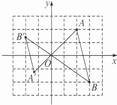 4. 如图,在平面直角坐标系中,每个小方格的边长均为$1$。$\triangle AOB与\triangle A'OB'是以原点O$为位似中心的位似图形,且相似比为$3:2$,点$A$,$B$都在格点上,则点$B'$的坐标是____。