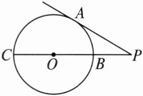 8. 如图,$PA与\odot O相切于点A$,$PC经过\odot O的圆心且与该圆相交于B$,$C$两点. 若$PA = 4$,$PB = 2$,则$\sin P = $____.