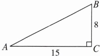 解:$\because$ 在Rt△ABC中,$AB=\sqrt{BC^2+AC^2}=\sqrt{289}=17$,$\therefore\sin A=\frac{BC}{AB}=\frac{8}{17}$.