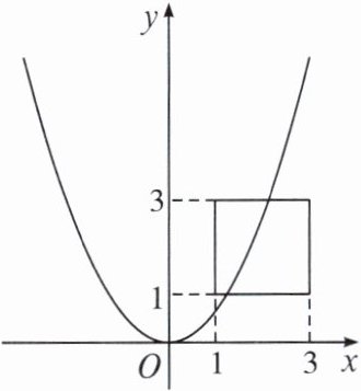 4. 如图,正方形四个顶点的坐标依次为$(1,1)$,$(3,1)$,$(3,3)$,$(1,3)$。若抛物线$y = ax^2$与正方形有公共点,则实数$a$的取值范围是( )