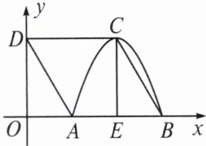 (1)由抛物线的对称性可知$AE=BE$.在$Rt\triangle AOD$和$Rt\triangle BEC$中,$\because OD=EC$,$AD=BC$,$\therefore Rt\triangle AOD\congRt\triangle BEC(HL)$.$\therefore OA=EB=EA$.设菱形的边长为$2m$,在$Rt\triangle AOD$中,$m^{2}+(\sqrt{3})^{2}=(2m)^{2}$,解得$m=1$.$\therefore DC=2$,$OA=1$,$OB=3$.故$A,B,C$三点的坐标分别为$(1,0),(3,0),(2,\sqrt{3})$.
