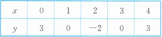 5.$y=x^{2}-4x+3$ 由于表格中只有一组数据计算错误,根据抛物线的对称性及图象经过点$(0,3),(4,3)$可得抛物线的对称轴为直线$x=2$,而根据图象经过点$(1,0)$,$(3,0)$亦可得抛物线的对称轴为直线$x=2$,所以抛物线的对称轴可确定为直线$x=2$,而且能断定这四组数据都不会错.所以从这四个点中任意选3个可求得其解析式.如设二次函数解析式为$y=a(x-1)(x-3)$,把$x=0$,$y=3$代入得$3=a(0-1)\cdot(0-3)$,解得$a=1$,所以$y=(x-1)(x-3)=x^{2}-4x+3$.