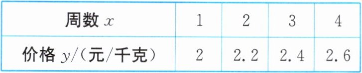 (1)通过观察可见5月份价格$y$与周数$x$符合一次函数解析式,即$y=0.2x+1.8$.