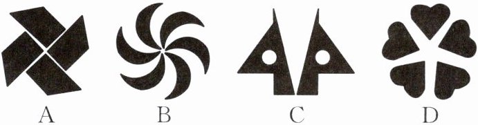 1. 下列图案中,不能由其中一个图形通过旋转而构成的是( )