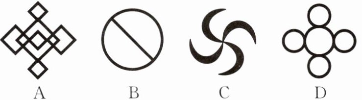 C 通过剪纸方法的图示可以看出剪出的图案应该既是轴对称图形,又是中心对称图形.在四个图案中,选项C是中心对称图形,但不是轴对称图形.