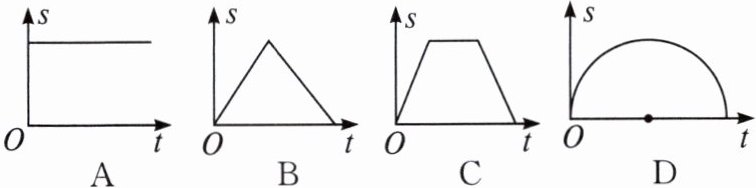 3. 如图,$ AB $ 是半圆 $ O $ 的直径,点 $ P $ 从点 $ O $ 出发,沿 $ OA \to \overset{\frown}{AB} \to BO $ 的路径运动一周。设 $ OP $ 为 $ s $,运动时间为 $ t $,则下列图象能大致地刻画 $ s $ 与 $ t $ 之间关系的是( )