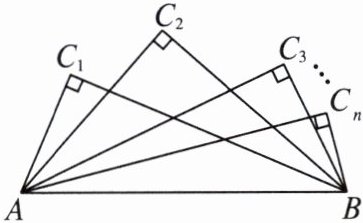 根据直角三角形斜边上的中线等于斜边的一半,可知C₁D = C₂D = C₃D = … = CₙD = $\frac{1}{2}$AB。所以点C₁,C₂,C₃,…,Cₙ在同一个圆上,并且在以AB为直径的圆上。