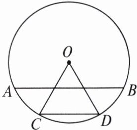 4. 如图,$ AB $,$ CD $ 是 $ \odot O $ 的弦,$ OC $,$ OD $ 是 $ \odot O $ 的半径,则以 $ A $ 为端点的劣弧是____;若 $ \overset{\frown}{AD} $ 与 $ \overset{\frown}{BC} $ 是等弧,则 $ \overset{\frown}{AC} = $____。