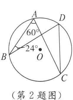 2. 如图,$A$,$B$,$C$,$D是\odot O$上的四个点,$\angle A = 60°$,$\angle B = 24°$,则$\angle C$的度数为( )