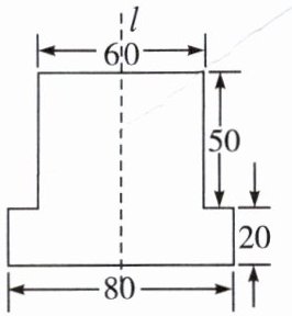 4. 由两个长方形组成的工件平面图(单位:$mm$)如图所示,直线$l$是它的对称轴,能完全覆盖这个平面图形的圆面的最小半径是______$mm$。