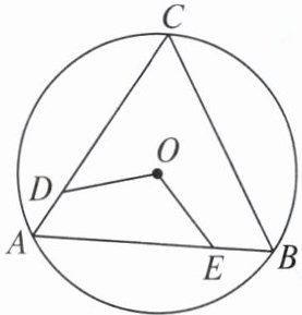 3. 如图,$\triangle ABC是\odot O$的内接正三角形,点$O$是圆心,点$D$,$E分别在边AC$,$AB$上,若$DA = EB$,则$\angle DOE$的度数是______度。