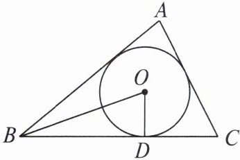8. 如图,已知△ABC 的内切圆⊙O 与 BC 边相切于点 D,连接 OB,OD. 若∠ABC= 40°,则∠BOD 的度数是____.