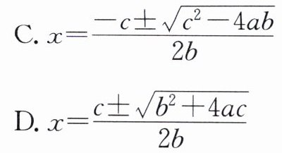 D.$ x = \frac{c\pm\sqrt{b^{2}+4ac}}{2b} $