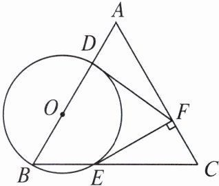 ★6. 如图,△ABC 是边长为 4 的等边三角形,点 O 在边 AB 上,⊙O 过点 B 且分别与边 AB,BC 相交于点 D,E,EF⊥AC,垂足为 F.