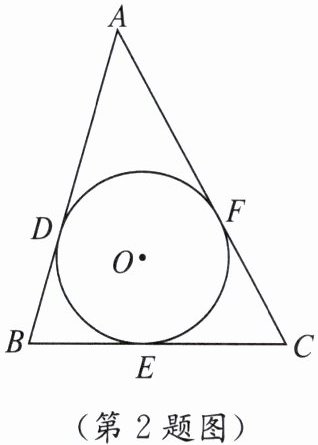 2. 如图,⊙O 与△ABC 各边分别相切于点 D,E,F,△ABC 的周长为 20 cm. 若 AF= 5 cm,CF= 3 cm,则 BE= ____ cm.
