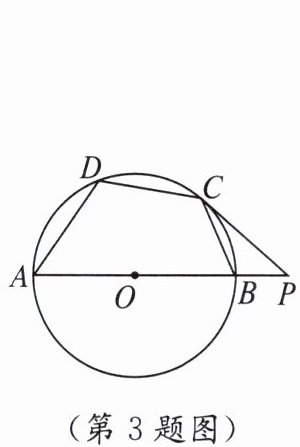 3. 如图,四边形 ABCD 内接于⊙O,AB 是直径,过点 C 的切线与 AB 的延长线交于点 P,若∠P= 40°,则∠D 的度数为____.