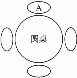 6. 一张圆桌旁有四个座位,$A$ 先坐在如图所示的座位上,$B$,$C$,$D$ 三人随机坐到其他三个座位上,求 $A$ 与 $B$ 不相邻而坐的概率。