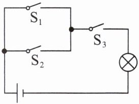 解 随机闭合开关$S_{1},S_{2},S_{3}$中的两个,共有3种情况:$S_{1}S_{2},S_{1}S_{3},S_{2}S_{3}$,能让灯泡发光的有$S_{1}S_{3},S_{2}S_{3}$两种情况,故能让灯泡发光的概率为$\frac{2}{3}$.