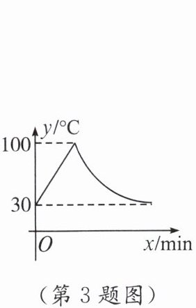 ★3. 教室里的饮水机接通电源就进入自动程序:开机加热时每分钟上升 $ 10^{\circ}C $,加热到 $ 100^{\circ}C $ 后停止加热,水温开始下降,此时水温(单位:$ ^{\circ}C $)与开机后用时(单位:$ min $)成反比例关系,直至水温降至 $ 30^{\circ}C $,饮水机重新开始加热,重复上述过程. 若在水温为 $ 30^{\circ}C $ 时,接通电源后,水温 $ y $(单位:$ ^{\circ}C $)和时间 $ x $(单位:$ min $)的关系如图所示,为了在上午第一节下课时($ 8:45 $)能喝到不超过 $ 50^{\circ}C $ 的水,则接通电源的时间可以是当天上午的( )