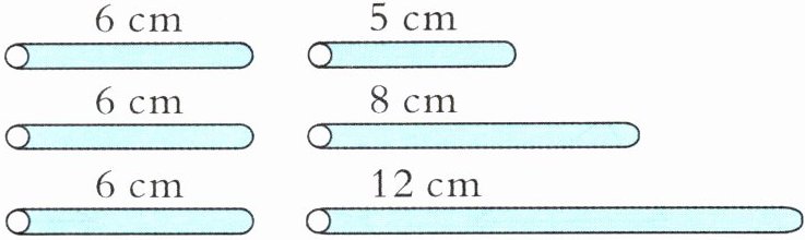 四、从下面的小棒中任选3根,你能拼成哪些不同的三角形?