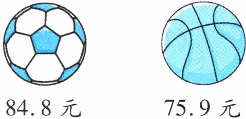 五、小培带一些钱去买体育用品,如果买一个足球还差 5.2 元,那么他只买一个篮球还剩多少钱?