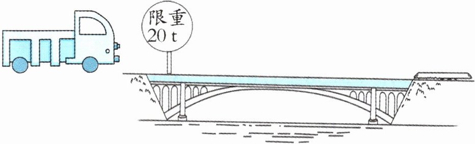五、一辆运货车运送一批货物,要通过一座桥(如下图所示),车上装有17.56 t的货物,这辆车自重4.5 t,这辆车要想安全通过此桥至少要卸下多少吨货物?