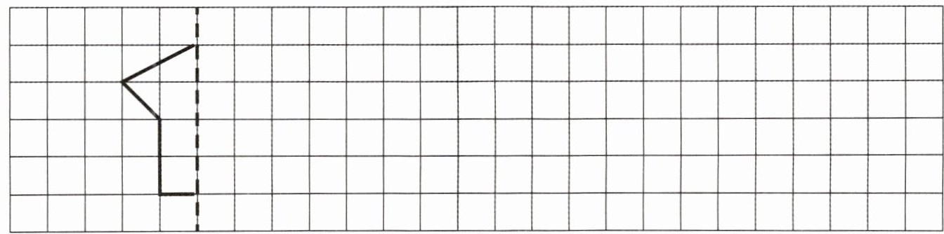 四、先根据对称轴补全下面这个轴对称图形,再画出这个轴对称图形向右平移6格后的图形。