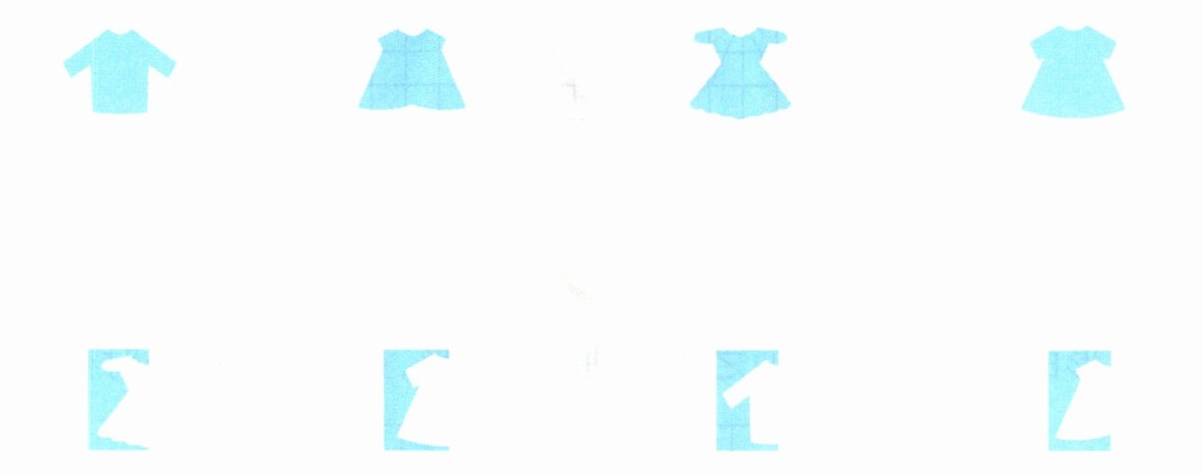 第四个图形是一个类似短袖上衣的形状,与下方第一个纸张上的图案轮廓相符。