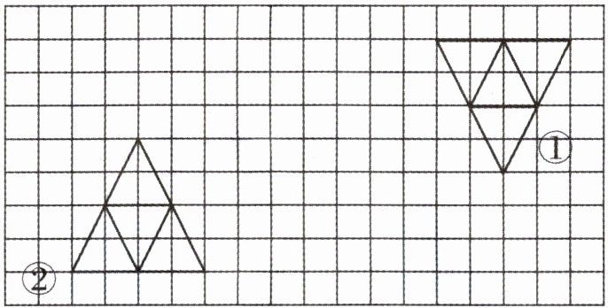 【解析】:观察图①和图②,图①大三角形尖朝上,图②尖朝下。将图①中最上面的小三角形向下平移3格,左上角的小三角形向右平移2格再向下平移1格,右上角的小三角形向左平移2格再向下平移1格,底部的小三角形位置不变,即可得到图②。通过这样平移其中的小三角形能让大三角形改变方向。