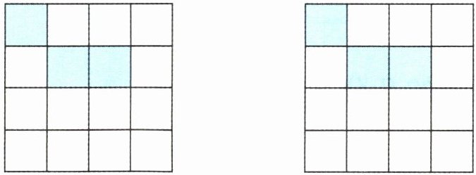 【解析】:观察左边的图形,它是一个$4×4$的方格图,其中有部分方格被浅蓝色填充。要使其成为至少有两条对称轴的轴对称图形,可以考虑以方格图的水平中线和垂直中线为对称轴进行补充。