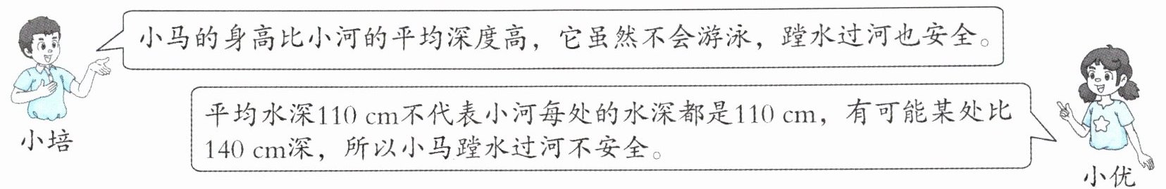 平均水深110cm不代表小河每处水深都是110cm,可能存在某处水深超过140cm,所以小马蹚水过河不安全。