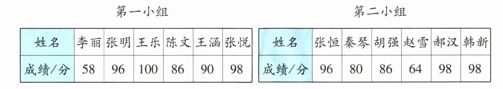 二、下面是两个小组同学某次数学测试的成绩情况。哪个小组的成绩好一些?