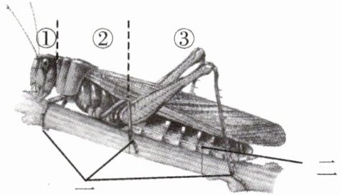 (2)蝗虫的运动器官主要是足和翅,这些器官都位于蝗虫的胸部。胸部是蝗虫的运动中心,具有三对足和两对翅,使得蝗虫能够灵活地在地面跳跃和在空中飞行,从而广泛分布。
