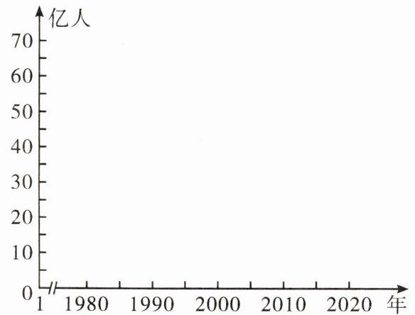 (2)请自行在坐标纸上绘出从公元 1 年到公元 1980 年的世界人口增长曲线。然后根据表中提供的数据,在下图中绘制从 1980 年到 2010 年的世界人口增长曲线。