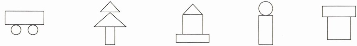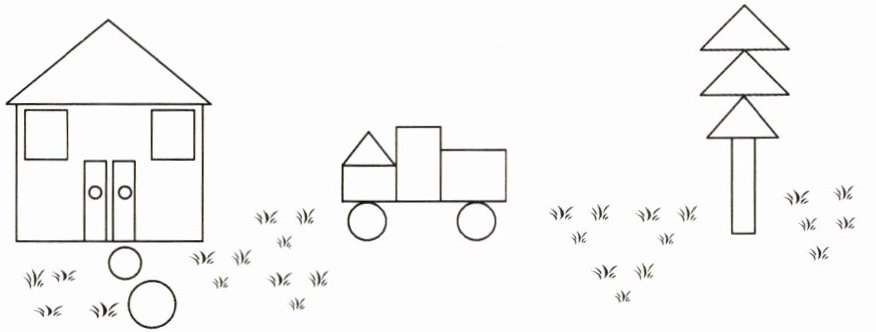 一、给正方形涂上红色,给长方形涂上蓝色,给三角形涂上绿色,给圆涂上黄色。