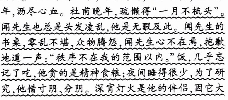 ⑥“做”了,他自己也没有“说”。他又由唐诗转到楚辞。十年艰辛,一部《校补》赫然而出。别人在赞美,在惊叹,而闻一多先生个人呢,也没有“说”。他又向“古典新义”迈进了。他潜心贯注,心会神凝,成了“何妨一下楼”的主人。